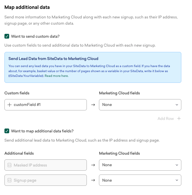 4. Finally, use the additional options to send custom data to Marketing Cloud.